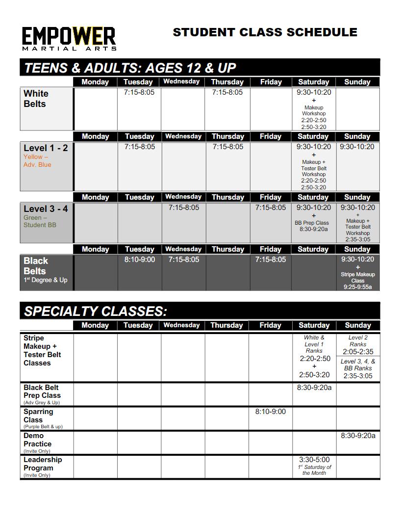 Click Here for Class Schedule