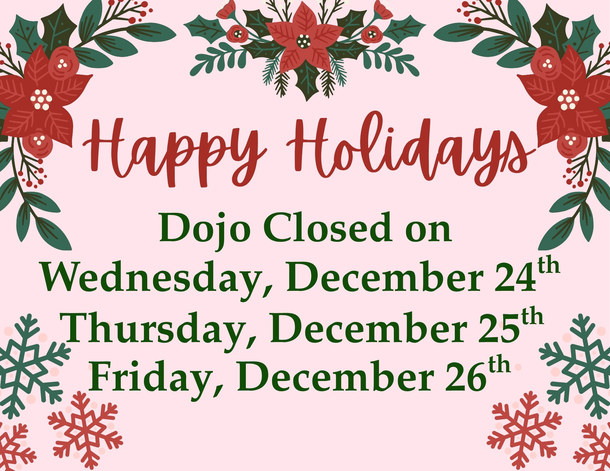 Christmas – Dojo Closed