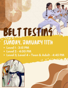 Level 1 – 3:15 PM; Level 2 – 4:00 PM; Level 3 & 4 + Teen & Adult – 4:45 PM